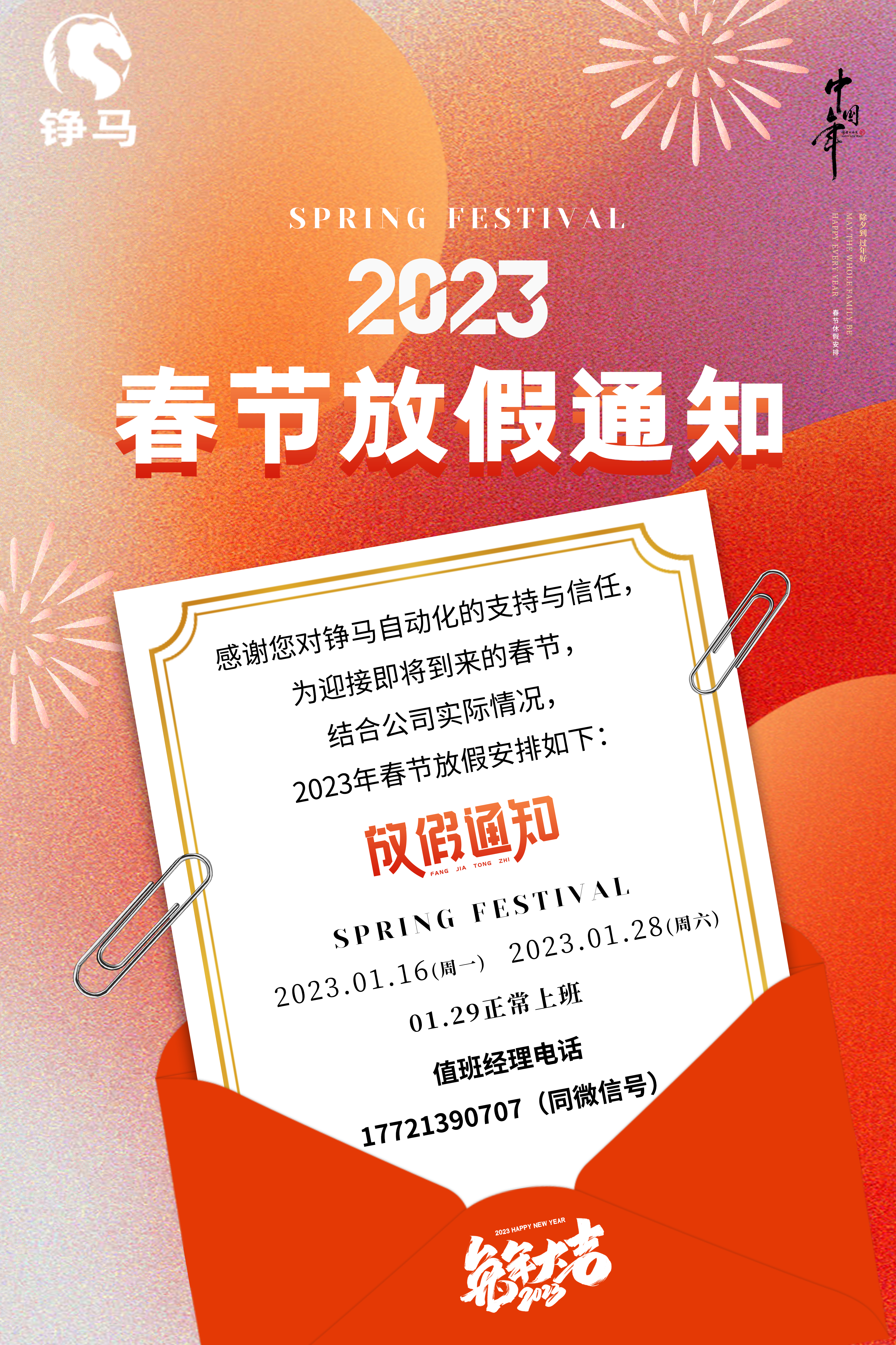 感謝您在過去的一年里對我們的關(guān)注、信任與支持。飲水思源,在新的一年,錚馬自動(dòng)化將秉持初心,繼續(xù)以優(yōu)質(zhì)高效的服務(wù)為您提供更加全面的服務(wù)!值此新春佳節(jié),錚馬自動(dòng)化在此瑾向各位致以誠摯的祝福和問候:愿所念之人,平安喜樂;愿所想之事,順心如意!根…